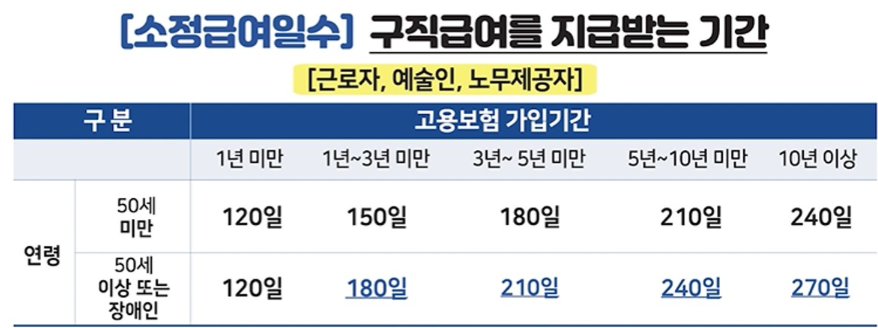 구직급여를 받을 수 있는 기간은 이직 당시 연령과 고용보험 가입 기간에 따라 다릅니다.