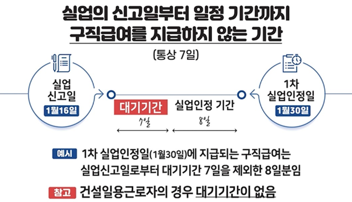 구직급여는 신청 후 바로 지급되지 않습니다. 7일간의 대기기간이 적용되며, 이 기간 동안은 급여가 지급되지 않습니다.