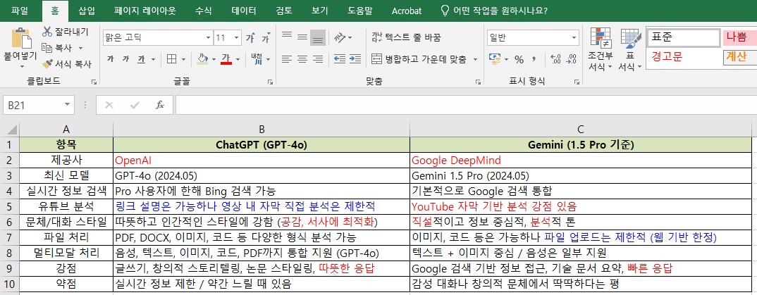 그리고 제미나이가 준 결과는? 엑셀 시트로 열려요.